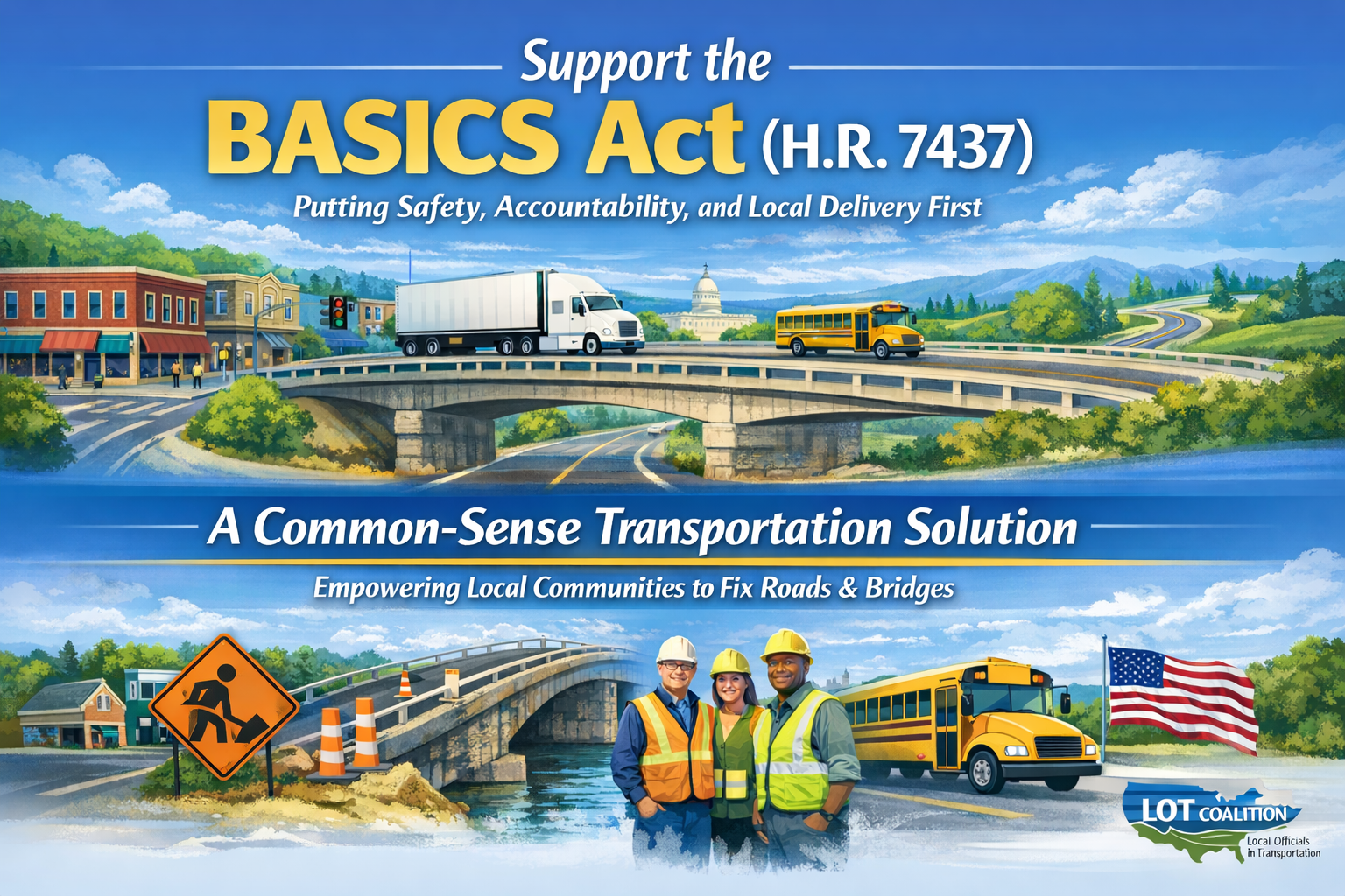 The BASICS Act aligns closely with priorities advanced by the Local Officials for Transportation (LOT) Coalition, which represents cities, towns, counties, rural transportation planning organizations (RTPOs), metropolitan planning organizations (MPOs), and regional councils nationwide. Together, LOT Coalition members advocate for federal transportation policies that recognize the central role communities play in planning, delivering, and maintaining the transportation systems that connect people to jobs, goods to markets, and regions to opportunity.
